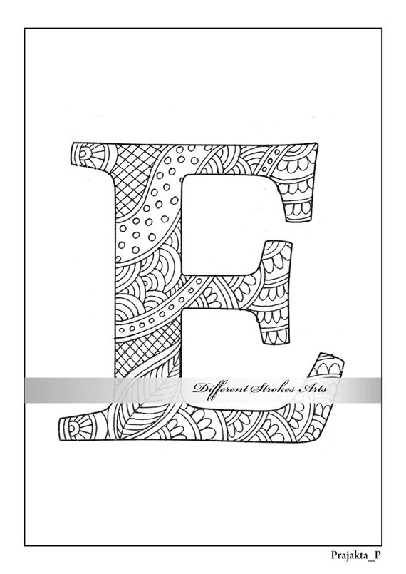 Malvorlagen Buchstaben Zentangle Alphabet E Farbe Fur Etsy